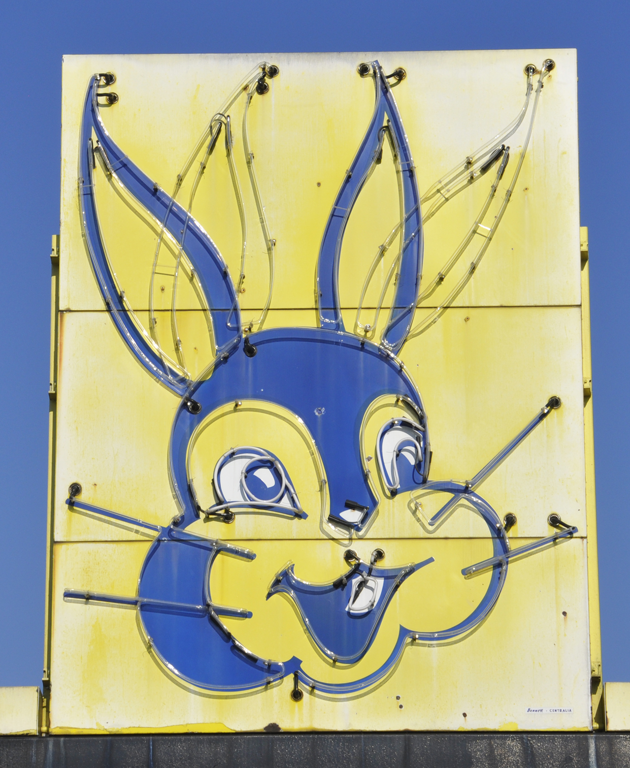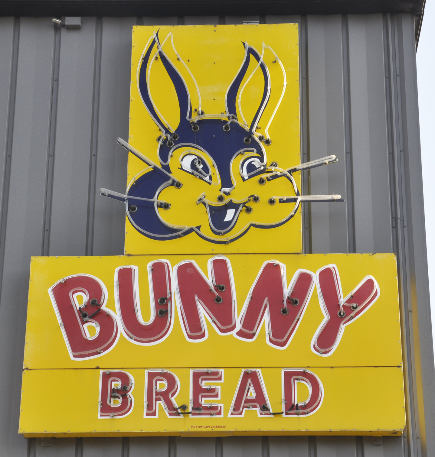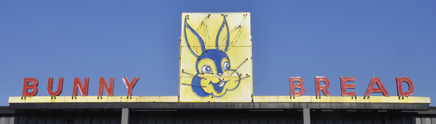 | TheseBunny Bread signs were restored and moved to the Lewis Bakery in 2021. The bakery produces Bunny Bread, Sunbeam, Butternut, and other brands. These signs had previously been displayed at a discount bakery in town. The only other surviving neon Bunny Bread signs that I know of are the ones in Marquette, MI and a private museum in Urbana, OH. For more, see this website. [map] |