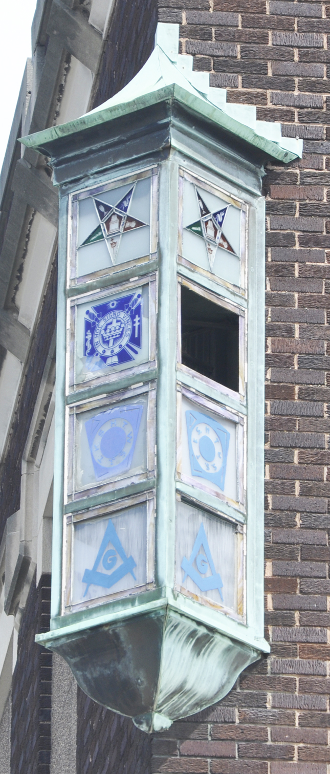 | This Masonic Temple sign has been installed on the building since at least the 1940s and may be much older than that. The building was constructed in 1912. For more, see this website. [map] |