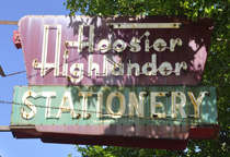 Hoosier Highlander opened in 1946 and this sign may be from then. The store's focus is on custom framing now. [map] Nick's Kitchen opened in 1908. This sign was built in 2009 as a replica of their sign from 1947. There had been a plastic sign here for many years. This new sign is lit at night. For more, see these websites: 1 and 2. [map] |