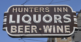 Hunters Inn opened in 1934. This sign might have been installed then. Around 2024, the sign was either replicated or restored. The neon had been missing for decades. It now has LED tubing. For more, see this website. [map] |