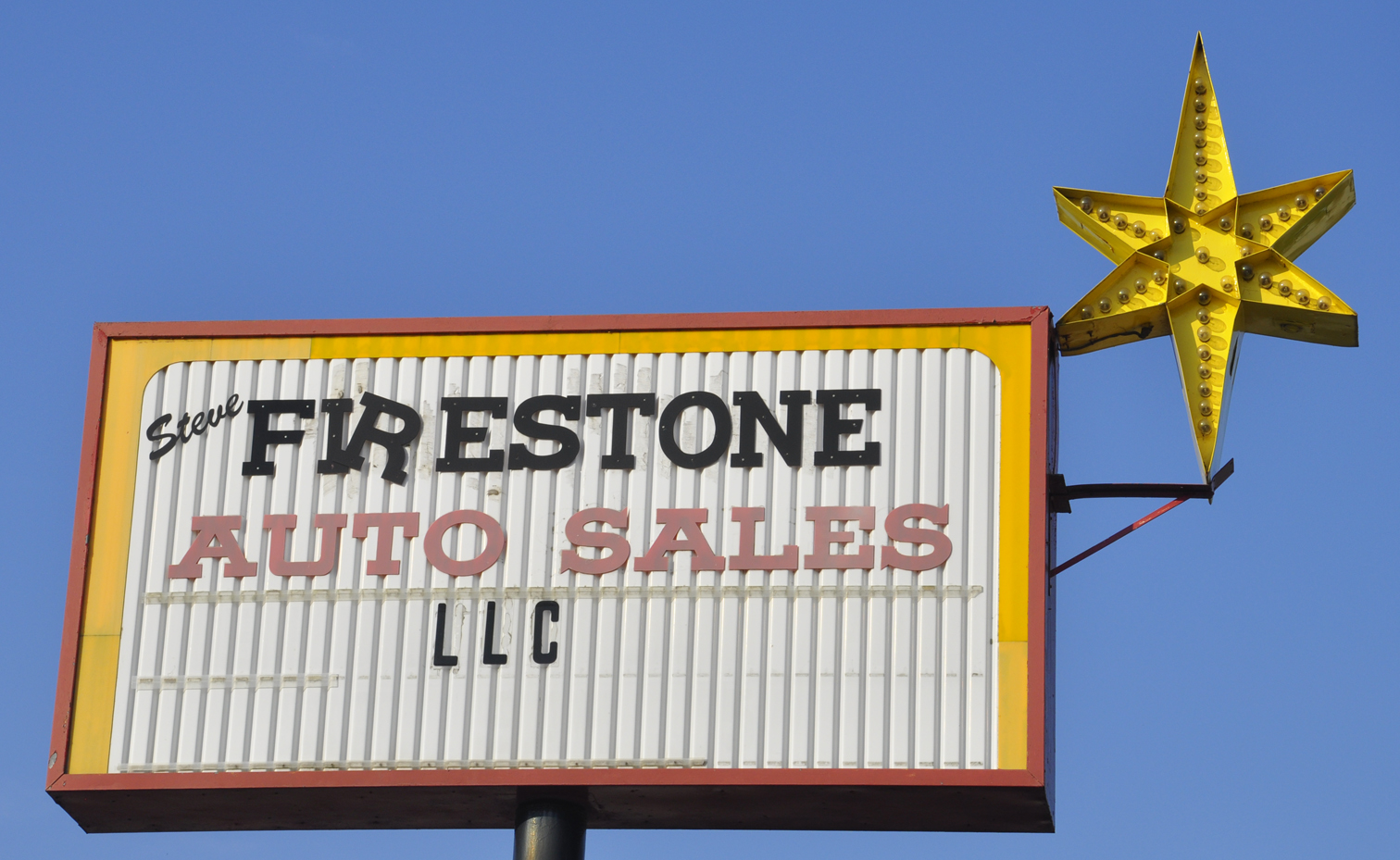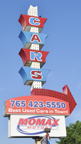 This bulb sign has been installed at this location which has been used for a used car lot since at least 2007. I don't know if there was another business there originally. These signs were produced by Patco Lighting & Engineering Corp. in the 1960s. I only know of two others that have survived. They are in Paragould, AR and Brigham City, UT. [map] |