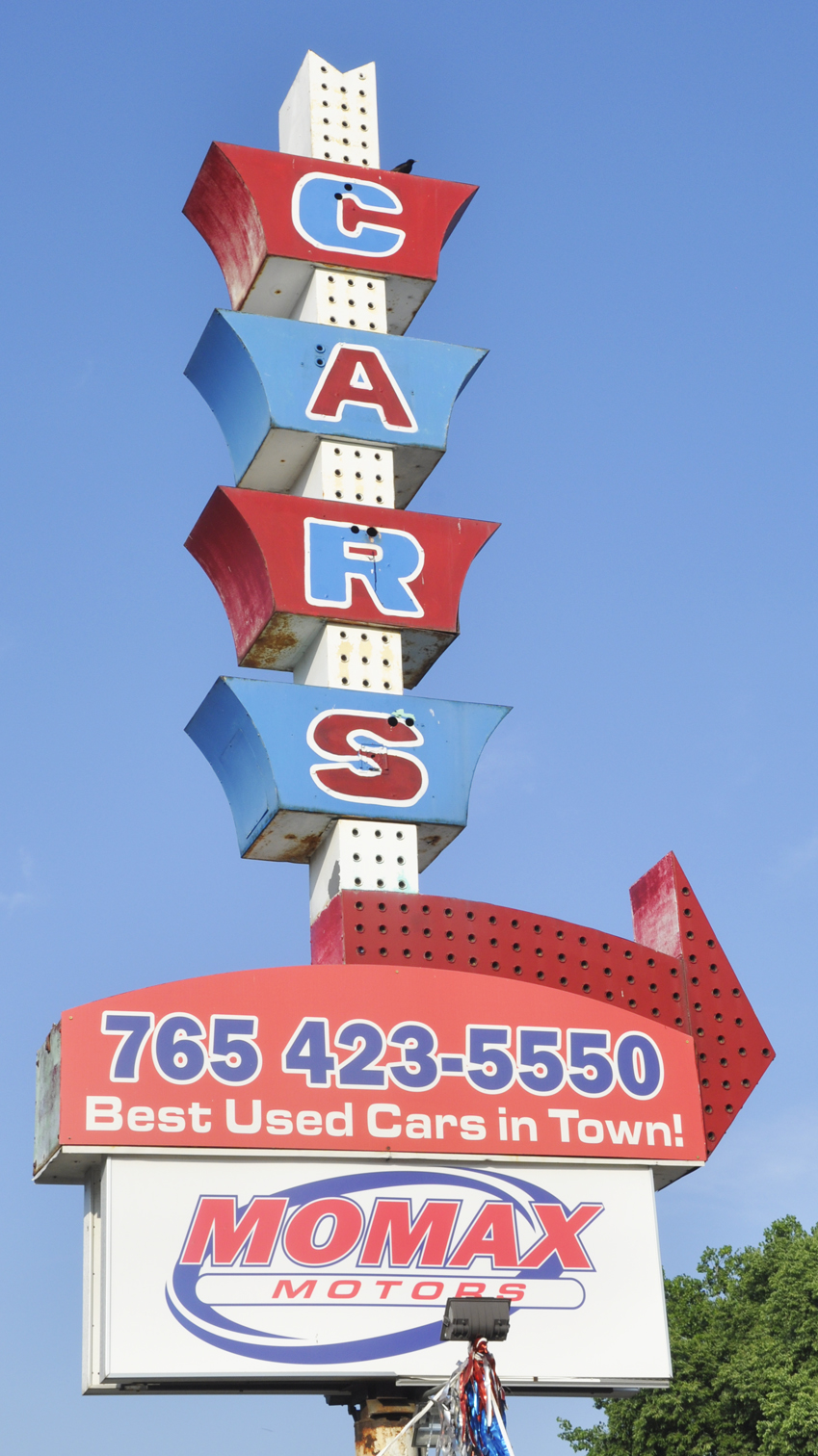 Bob Rohrman Auto Sales was established in 1963 when Bob Rohrman opened his first used car lot. This sign was not installed there then but was probably built shortly after that. Around 2022, the company moved and this sign was restored and installed at the new location. [map]