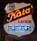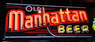Grindstone Charley's bar and grill has these two mass-produced neon beer signs inside. |