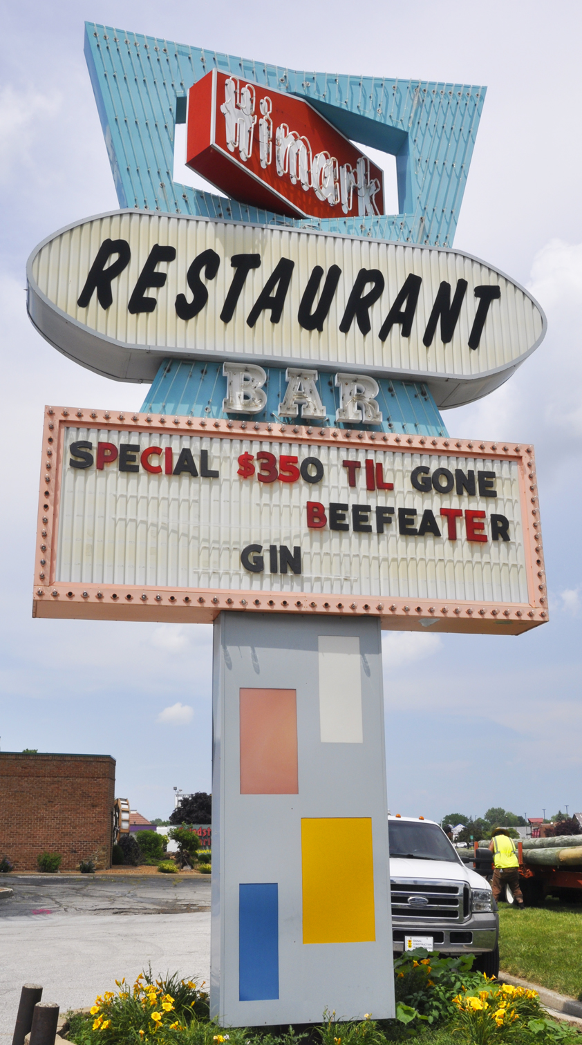 The Hi-Mark Restaurant & Lounge had opened by 1961 and this sign was probably built around then. It was replaced with a replica in 2007. The original was probably from the 1960s. The panel with the "Hi-Mark" name on it revolves. For more, see this website. [map]