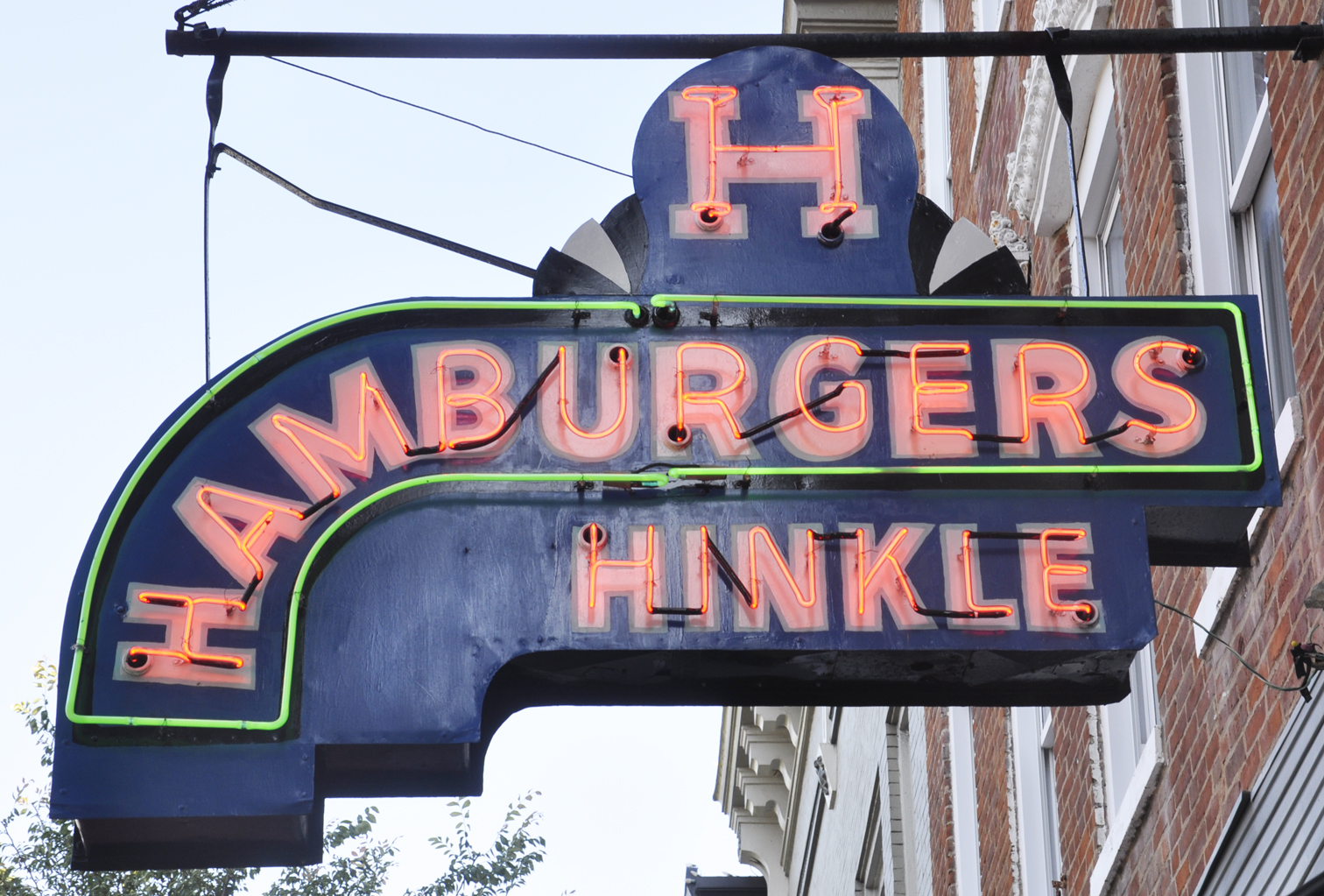 Hinkle's Sandwich Shop opened in 1933. This sign might be from the 1940s or 1950s. It was repainted these colors by 2013. It was previously painted light blue and yellow. For more, see this website. [map] |