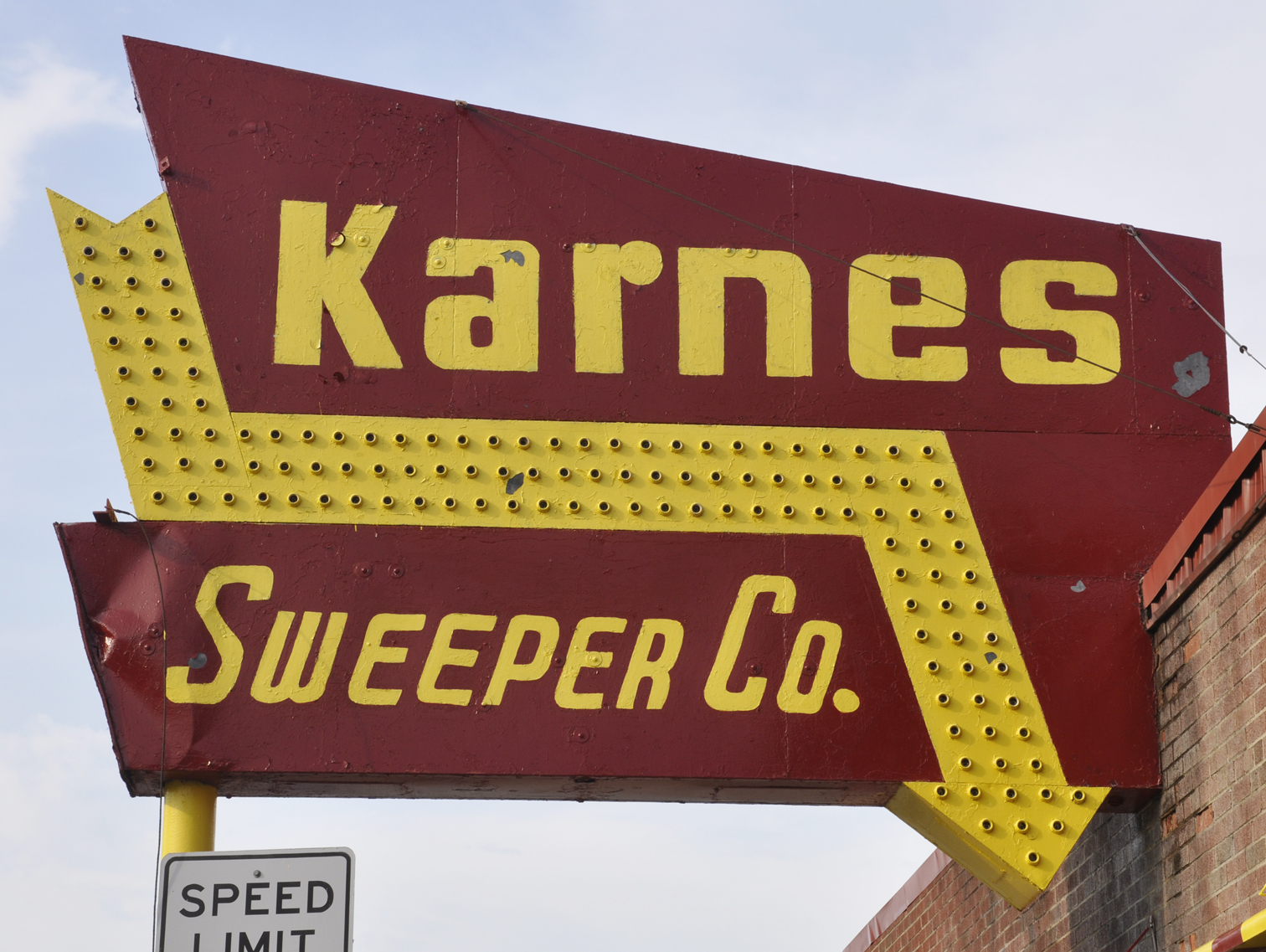 The Karnes Sweeper Co. was established in 1939.  This sign is probably from the 1950s. The neon has been missing since at least 2007. [map]