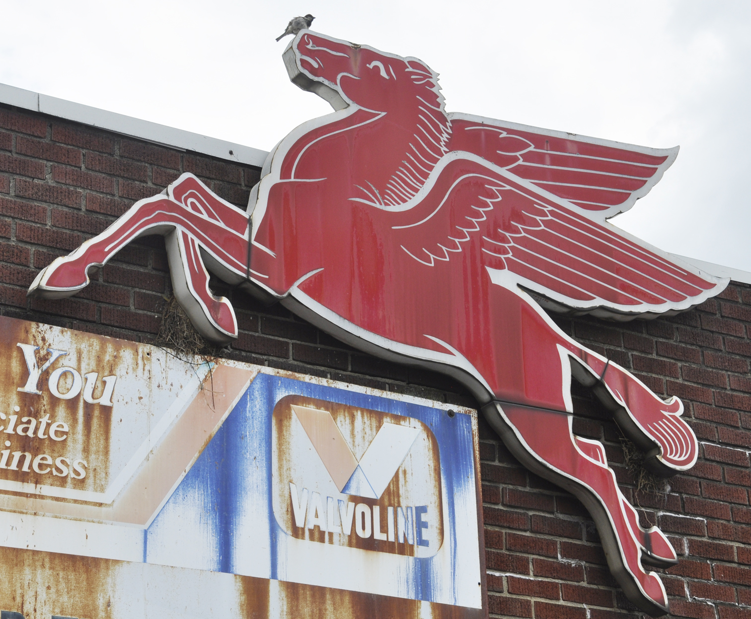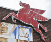 | This Mobilgas sign is installed at Hostetler Tire & Auto Sales. This sign has been on the building since at least 1956 when the business was selling tires and gas. [map] |