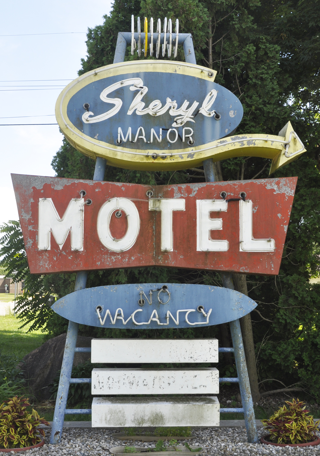 The Sheryl Manor Motel sign is probably from the 1950s or 1960s. [map] |