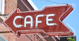 The Trails Cafe opened in 1965 and this sign is from then. The bottom originally read "Open 24 Hours." [map]