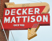 Decker & Mattison, a heating, air conditioning and ventilation business, was established in 1930. This sign is probably from the 1950s. This sign was restored in 2016 by Affordable Sign & LED. [map] |