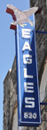 The Rex's Auto Sales sign is probably from the 1950s. [map] This Fraternal Order of Eagles sign looks like a modern replica of an older sign. [map] |