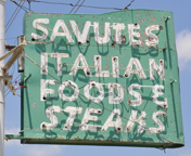 Dutch's Greenhouse opened here in 1957. This sign may have been built later or adapted from an earlier neon sign. [map] The Angelo's Italian Restaurant sign is a recreation built in 2021 of the original sign. When the restaurant opened a location in 1961 in a building that previously housed Leo's Furniture, the owners decided to keep the lion and just adapt the text. The restaurant moved in 1976 and the sign was brought along. In 2000, the sign was hit by a truck and destroyed. The new sign was built by Miracle Signs. The arrow at the bottom was originally neon extension tubing that alternated between a compressed and a straight arrow. [map] Savute's Italian Restaurant was established in 1944 as "Rosie's." The restaurant moved to its current location in 1952. The name was changed to Savute's in 1960. These signs are probably from then. [map] |