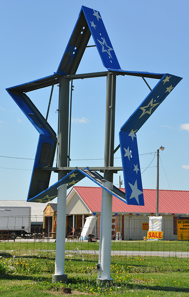 Jerry's Restaurant was part of a Kentucky chain. By 2010, this sign had been replaced with a plastic box sign. The restaurant was closed as well. By 2013, the only thing left was a vacant lot. For more, see these websites: 1 and 2. The Star Motel sign still had a ring of neon stars around it in 2007. By 2010, the sign had been stripped down to the frame with stars painted on the side. By 2018, white panels were finally installed in the frame. For more, see these websites: 1 and 2. [map] |