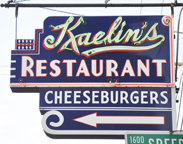 Kaelin's Restaurant opened in 1934 and closed in 2009. This sign might be from the 1940s. In 2018, the sign was restored by Rueff Signs for the building's new occupant, 80/20 @ Kaelin's Restaurant. For more, see this website. [map]