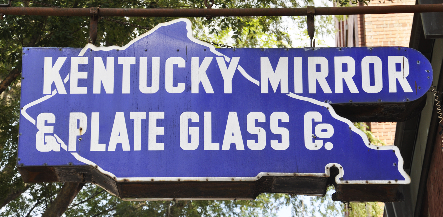 | The Kentucky Mirror & Plate Glass sign is probably from the 1950s. The store is on a one-way street so the neon was only installed on the side which faces traffic. [map] |