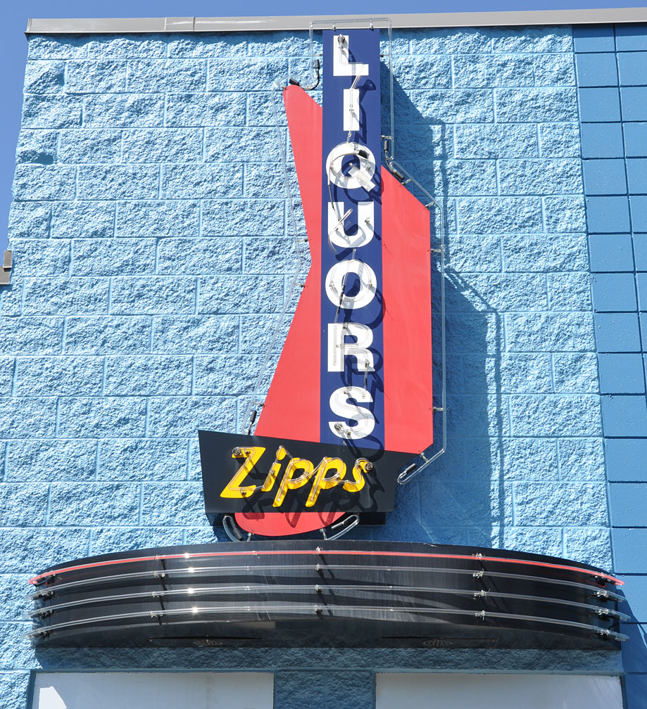 The Imperial Room opened around 2002. This is a modern sign. This photo is from 2011. The restaurant and bar closed in 2015. The building remains vacant and the sign is still there. [map] Zipp's Liquors opened in 1961 and this sign appears to be from then. This smaller, modern sign above the door was built in the same style. For more, see this website. [map] |