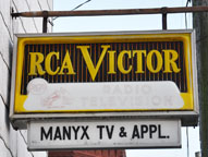 The Manyx TV & Appliancestore opened in 1949 as a radio repair shop. It was long gone but this RCA Victor sign remained until around 2024. |