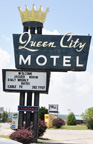 This Big Boy Burgers has been here since 1962. For more, see this website. [map] The Queen City Motel was originally called the Queen City Court. The text was changed accordingly on this sign which appeared to be from the 1950s. Around 2017, the sign was removed. For more, see these websites: 1 and 2. V's Italiano Ristorante was established in 1963. The restaurant moved to this location in 1971. For more, see this website. [map] Gateway Sporting Goods is gone but this sign remains. There is an antiques store in the space below the sign now. By 2019, the neon had been removed. The text on the vertical panel remains but the bottom panel was covered over with yellow paint. [map] |