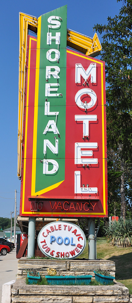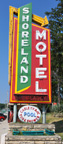 The Shoreland Motel sign is probably from the 1950s. The motel has closed and there are plans to demolish it. I don't know what will happen with this sign. For more, see these websites: 1 and 2. [map] The Berry Moore Furniture & Appliances store opened in 1950 and this sign was probably installed then. The store closed in 2008 and the sign was removed in 2014. |