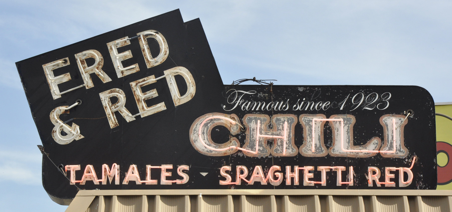 Fred & Red's was established in 1923 as Fred and Grover's. The restaurant moved to this location in 1943. In 1956, it became Fred & Red's. This sign may have ben built then. The restaurant closed 2012 but reopened in 2016. [map]