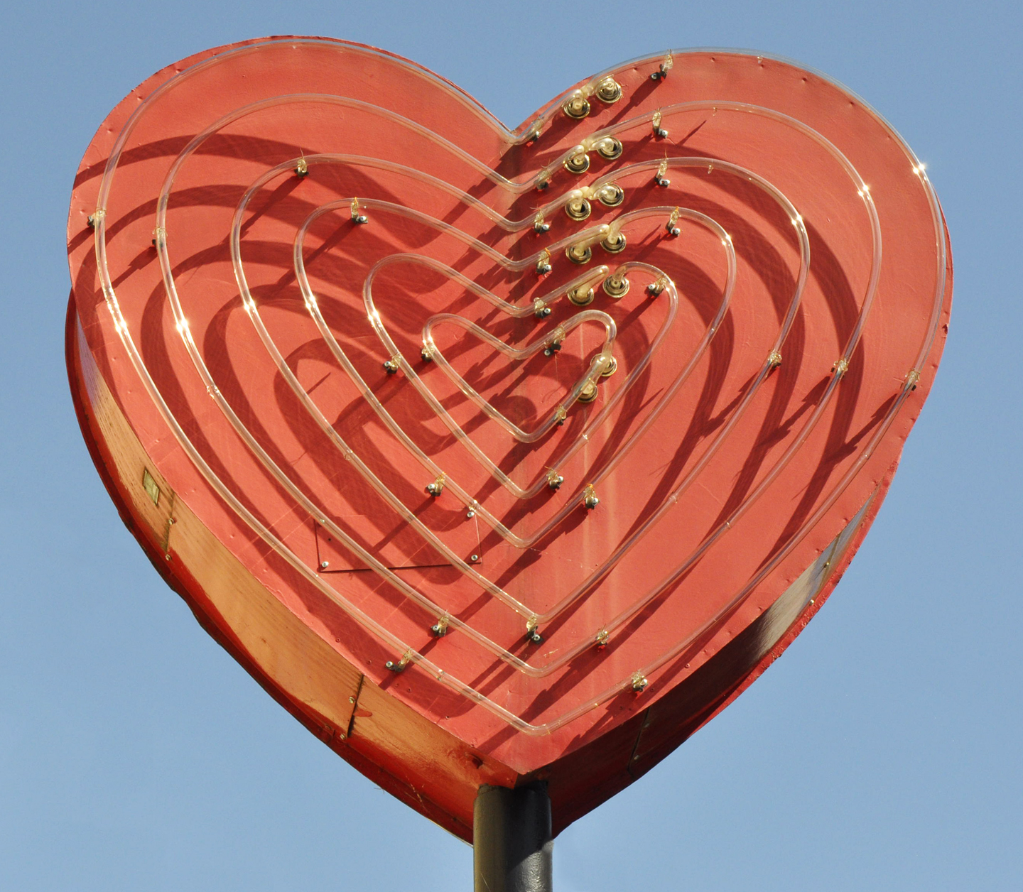 | The Hartley Heart came from the Hartley Furniture store. The store opened in 1953 and closed around 2006. This part of the sign was saved, restored and installed in 2018 at its current location. [map] |