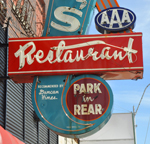 | Wilder's Steakhouse opened in 1933. The building was renovated in 1946. These signs are believed to be from the 1950s. In 2018, the rooftop sign was restored with a grant from the National Parks Association. For more, see these websites: 1 and 2. [map] |