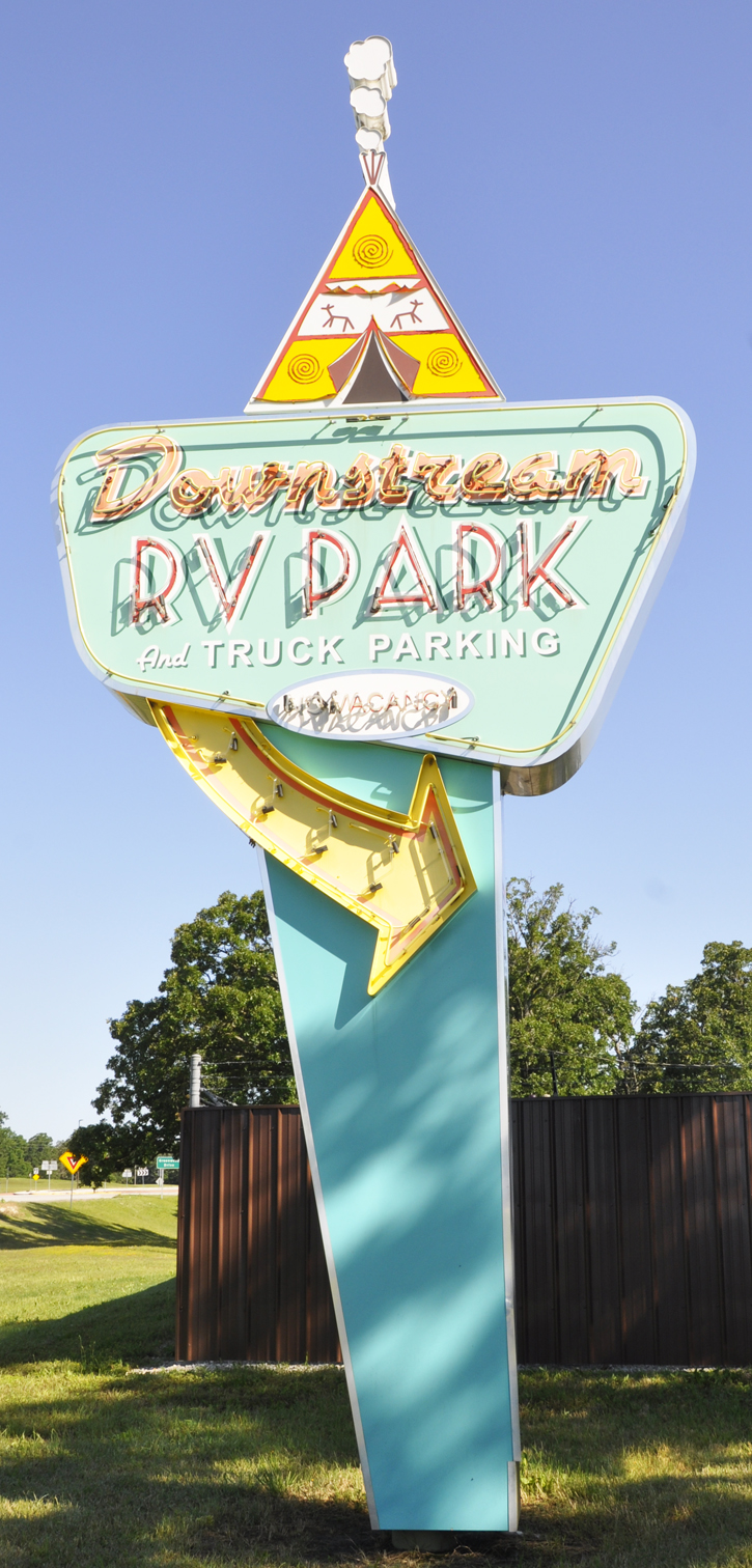 The Downstream RV Park sign was built and installed around 2022. [map] |