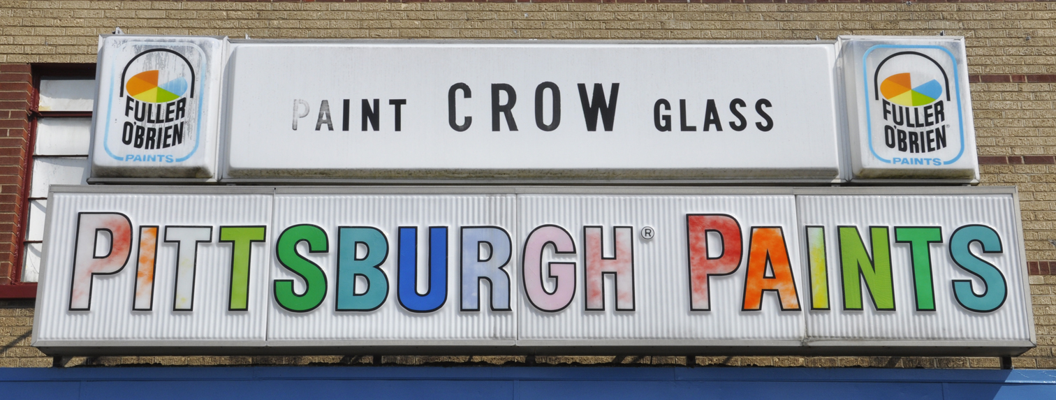 | These Pittsburgh Paints signs were both mass-produced, probably in the 1960s and/or 1970s. These are installed at Crow Paint and Glass. For more, see this website. [map] |