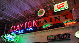 | These photos were taken in 2012 at the Antique Warehouse which contained the vast, private collection of Greg Rhomberg. He had been collecting antiques and signs his whole life. Many of the signs were last minute "saves" from closed businesses in St. Lous. Rhomberg passed away in 2023. In 2024, the collection was auctioned off and these signs are now scattered all over the country. For more, see these websites: 1, 2, and 3. |