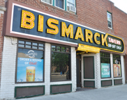 The Bismarck Tavern opened nearby as the Bismarck Liquor Store and Cafe around 1937. It moved to the current location around 1946. In 1955, the name was changed to the Bismarck Tavern. This sign may be from then. There is also another sign at the back entrance. [map] This vintage Records sign has been installed in the window of Vinyl Giant Records since around 2019. I don't know where it came from. [map] |