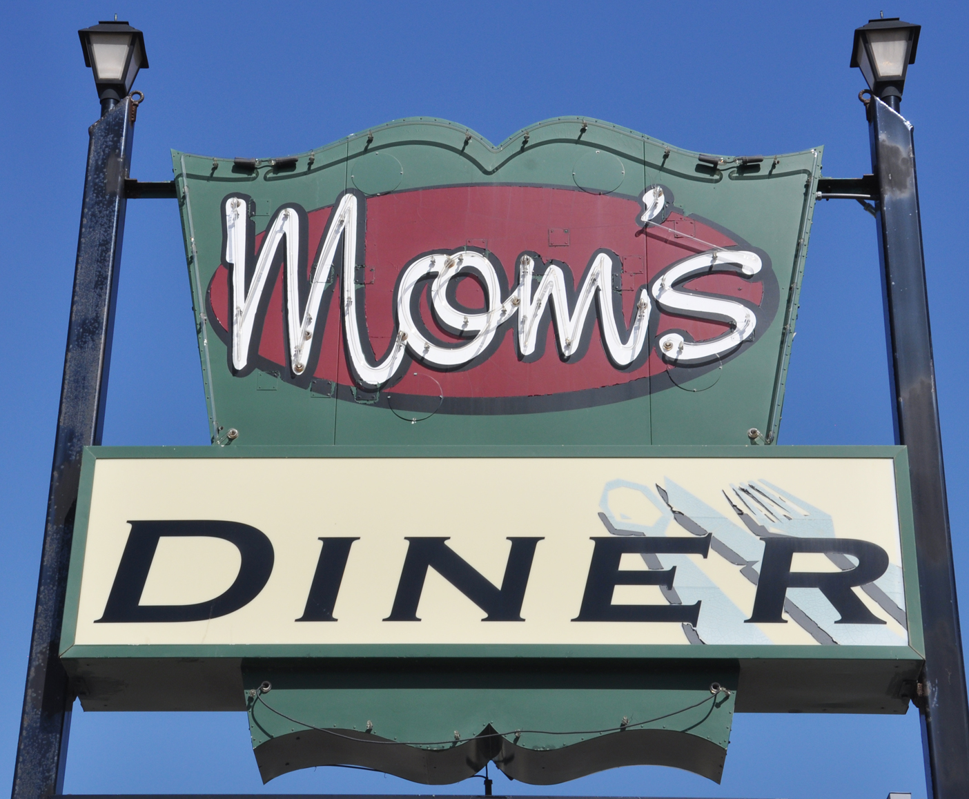 Mom's Diner opened in 1983 and this sign was probably built then. The business closed in 2020 but the sign remains. [map] |