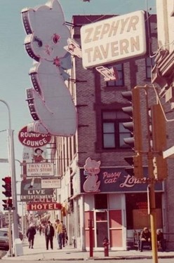 Chub's Pub and Package Place opened in 1966. This sign appears to be from then. [map] The Pink Pussycat Lounge opened in the 1960s. It closed in the 1980s and the signs were auctioned off. The cat-shaped projecting sign is about twenty feet tall. It is installed at a farm in Page, North Dakota. The two smaller signs which were part of the panel signs signs below are about six and half feet tall. Both of them went to private collections in Fargo. Jeff Thomas persuaded the owner of one of the signs to part with his so that he could display it at the soon-to-open bar and restaurant. He spent about $7,500 to restore the sign's neon. Frank's Lounge opened in 2015 and this sign is displayed inside. For more, see these websites: 1 and 2. The Roberts Alley sign was built and installed in 2019. [map] |