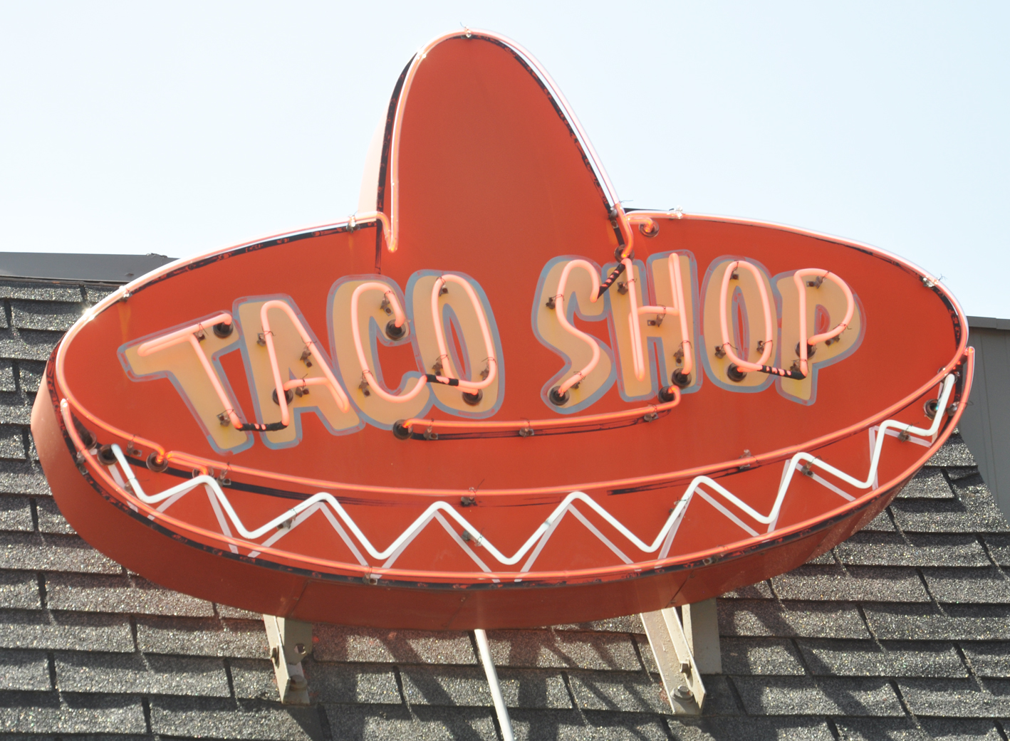 The Taco Shop on University Dr. N. was the original location. This sign is probably from then. I don't know if it ever had neon. [map] There is also a downtown location which opened in 2019 but it does not have a sign like this. |
