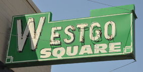 The M&J Brand Saloon sign may have been redone at some point. The business was originally known as the M&J Brand Steak House. The star on top of the sign is probably from the 1960s. For more, see this website. [map] Westgo Square is used for retail and office space. It was built in 1953 and expanded in 1963. I suspect this sign is from the latter date. [map] The Sunset Motel sign was probably from the 1950s or 1960s. When this photo was taken in 2011, it appeared to have been recently refurbished or might have been a replica sign. Around 2012, the motel became a Rodeway Inn and the sign was either destroyed or removed. For more, see this website. |