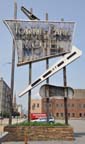 Although the Towne Park Motel was demolished in the early 1990s, this sign was still intact in 2009 when this photo was taken. By 2015, the arrow part of the sign and the letters had been removed. By 2019, plastic panels for another business had been installed in the frame. [map]
