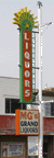 MG's Grand Liquors probably went by a different name originally. The store is still there but this sign is gone. The photo above is from 2006. Apparently, the sign was restored and moved to Socorro, NM by 2011 for a movie shoot. Shortly thereafter, the sign was blown down in a storm and significantly damaged. It is now in storage and there are no immediate plans to repair it.
