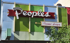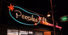 Peoples Flowers was founded in 1944 and now has four locations in the Albuquerque area. I believe that only these two locations have vintage signs.