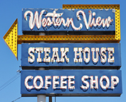 Creamland Dairies was established in 1937. The company moved to this location in 1948. This sign may be from then. For more, see this website. [map] Western View Diner & Steak House opened in 1941. This sign is probably from the 1950s or 1960s. For more, see this website. [map] |