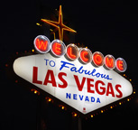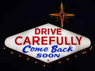 | The Welcome Sign was designed by Betty Willis and built in 1959 by Western Neon. The sign is made of neon, incandescent bulbs, and plastic. The original plastic panels were corrugated to keep the sign more rigid. The "Welcome" letters are painted to look like silver dollars. This is perhaps the world's most imitated sign. It stands in a traffic median at the south end of the Strip. As the Strip has grown, the sign has been moved further and further south. The sign was nearly demolished in 1993 but it is now listed on the National Register of Historic Places. For more, see these websites: 1, 2, and 3. [map] |