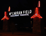 | The Alamo Airport was built in 1942. It was renamed McCarran Field in 1948 and this gate served as the main entrance. The gate includes simulated steel propellers and bird wings. The terminals have been moved elsewhere but the Executive Air Terminal is still used for private aircraft. For more, see this website. [map] |