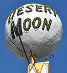 | The Desert Moon Motel opened in 1952. The original sign featured a saguaro cactus and a moon. The moon on top of this sign may have revolved originally. By 2019, the letter panels had been painted yellow and the moon was painted white. [map] |