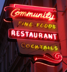 The Community Restaurant opened in the 1930s as the Community Coffee Shop. It became the Community Grill in 1940. In 1965, it was renamed the Community Restaurant. I suppose this sign was also adapted for these changes. [map]