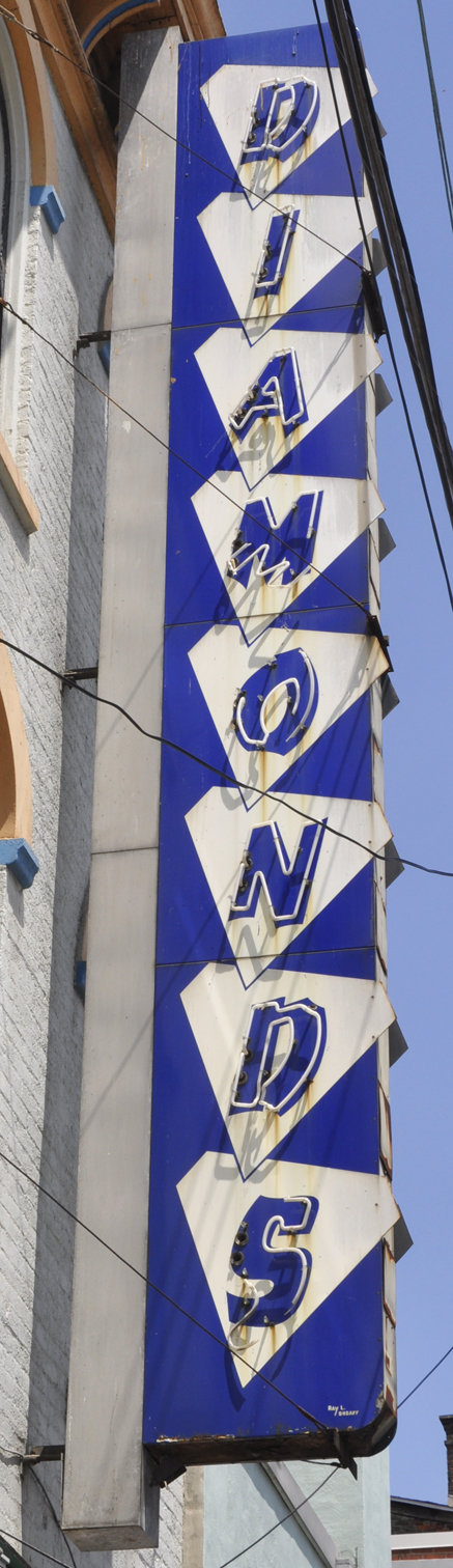 I believe this Diamonds sign was installed for the E. Wagner & Son jewelry store which is long gone. The sign appears to be from the 1950s. However, the sign was not there in the 1960s so it might have come from somewhere else and been installed here after that. For more, see this website. [map]