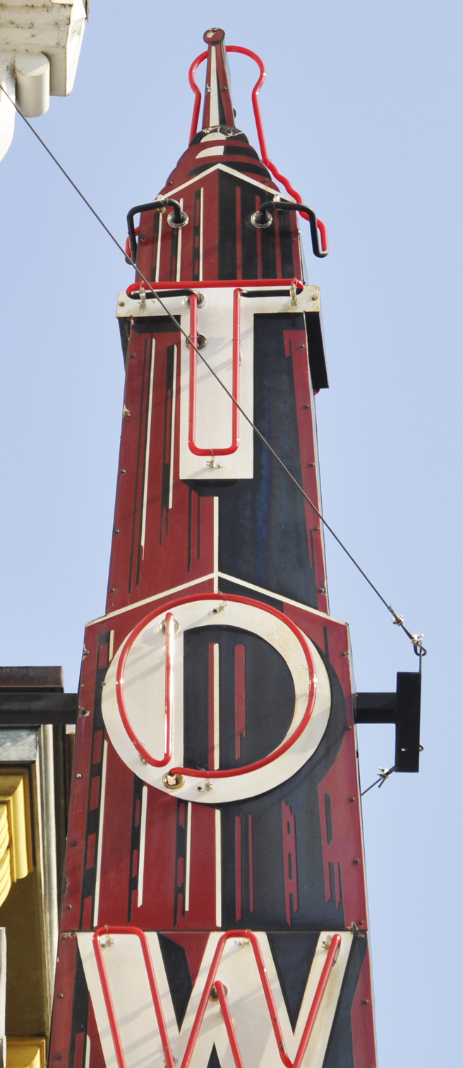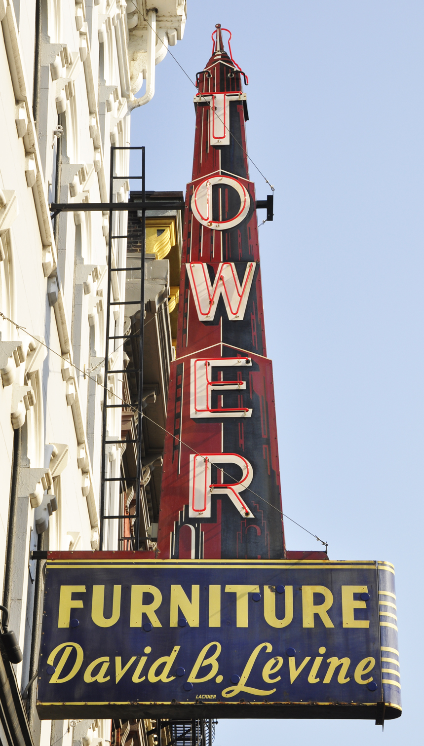 Tower Furniture was at this location by 1940 and is long gone. This sign is probably from the 1950s. The bottom part of the sign had been painted over since at least 2007. In 2017, the sign was removed and restored by the American Sign Museum's Neonworks shop. The building was renovated and the sign was reinstalled in 2018. For more, see this website. [map] |