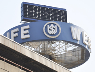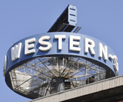 This rooftop Western & Southern Life Insurance Company revolving sign was installed in mid-1950s. It no longer spins and the time/temperature panel no longer works. For more, see this website. [map] |
