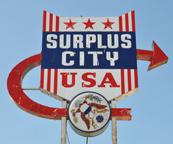 Surplus City USA was established in 1947. This sign is probably from the 1950s. The store closed in 2013 but this sign remains. In 2016, there were plans to develop the property. However, nothing has happened so far. [map] |