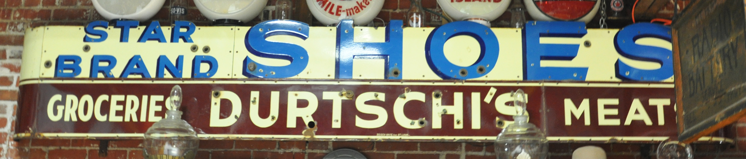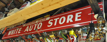| The Signs of the Times Event Center opened around 2015 and closed in 2020. It was owned by Larry White and the interior featured many signs and antiques from the owner's, Larry White, collection. There was also an opal glass drug store sign on display. The space was rented for weddings, business and group gatherings, birthdays, and other events. The VFW sign is located down the street next to the former gas station with Gulf signs. I believe that building is also owned by Larry White. The Gulf sign is still there. I assume that the rest of this sign collection is now private or in storage. |