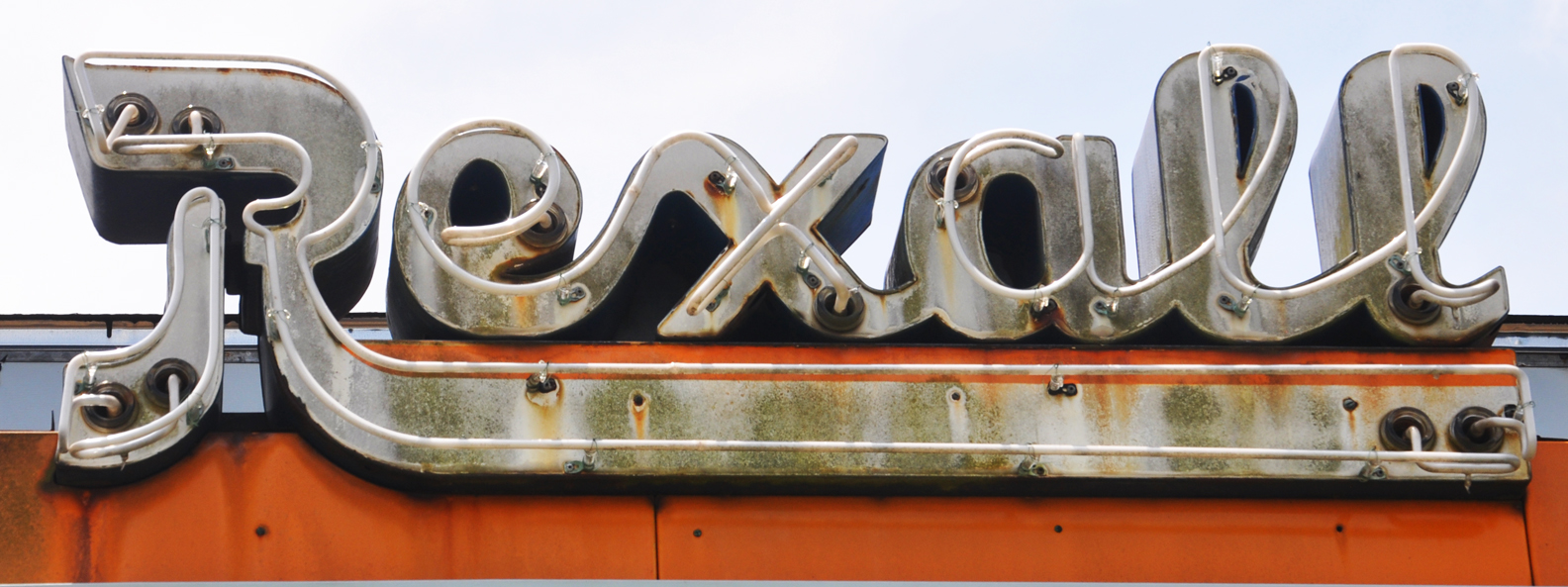 | Glenn's Rexall Drug featured an old oval neon sign and a more modern plastic panel sign. These photos are from 2010. By 2015, the store had closed and the signs were gone. |