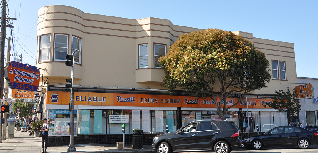 | Reliable Rexall has been here since at least the late 1950s. The Reliable Compounding sign on the corner originally read Reliable Drugs and Liquors. The neon was removed and the panels were reworked sometime between 2006 and 2009. Around 2020, the overlay on the projecting sign on the corner was also changed. [map] |