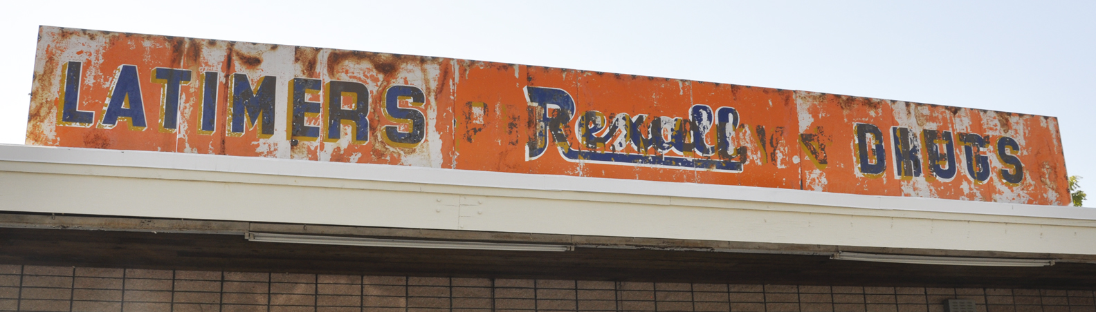 | Latimer's Pharmacy opened in 1946 and closed in 2024. This sign had been painted over since at least 2007 and was uncovered in 2025. [map] |